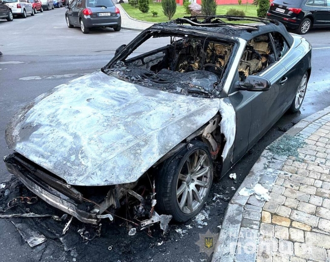 У поліції Рівненської області повідомляють, що внаслідок пожежі було повністю знищено передню частину та салон легкового автомобіля «Audi А5», припаркованого біля житлового будинку.