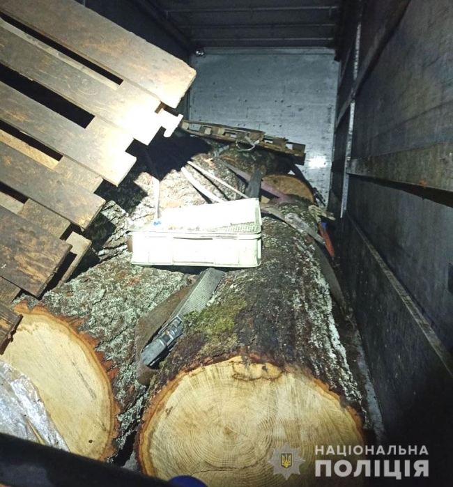 Учора пізно ввечері під час патрулювання на трасі Київ-Чоп поблизу села Страшеве поліцейські звернули увагу на вантажівку, в якої не підсвічувався номерний знак. Як повідомляє відділ комунікації поліції Рівненської області, під час перевірки правоохоронці виявили деревину – 15 триметрових колод. 26-річний водій (мешканець села Дядьковичі) не зміг пояснити поліцейським, звідки у нього цей вантаж. Тож усі дубові колоди разом з вантажним автомобілем вилучили і перемістили на територію поліцейського відділення. Поки що триває досудове розслідування – за статтею 198 ККУ (за фактом зберігання майна, завідомо здобутого злочинним шляхом). Водій може потрапити за грати на три роки.