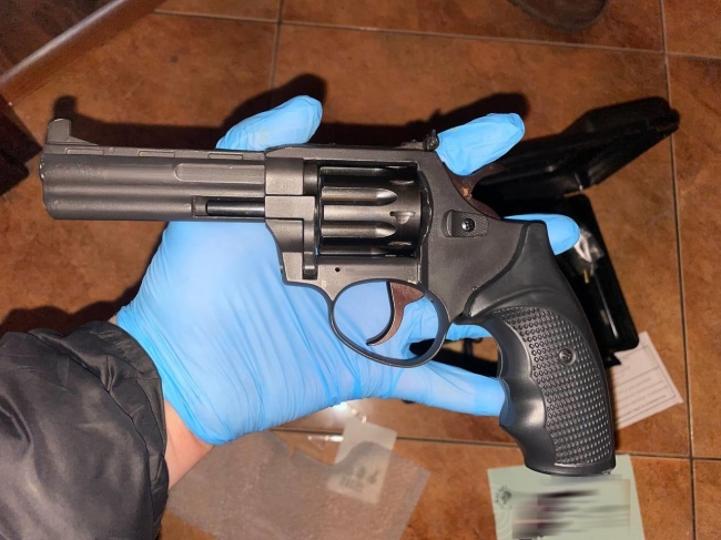 Під час проведення санкціонованого обшуку в його квартирі поліцейські виявили та вилучили револьвер, 63 придатних до стрільби патрони, зокрема 49 із них за результатами експертизи є бойовими припасами стрілецької вогнепальної зброї, та 14 — патронів Флобера.