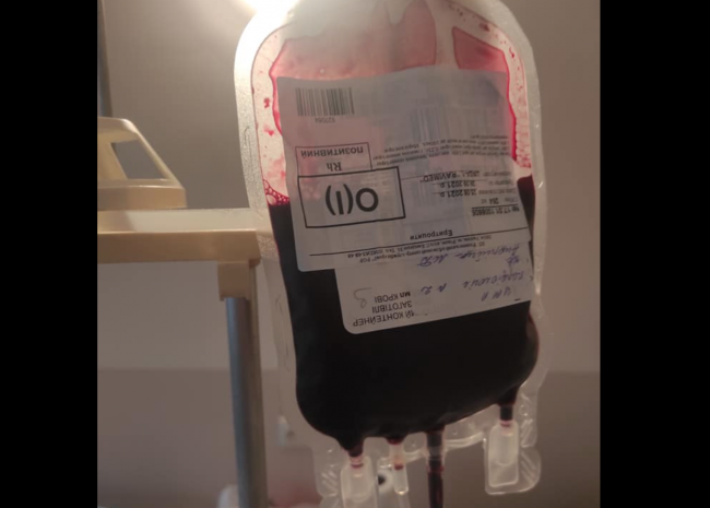 За пару хвилин відзвонюється: “До тебе біжить наш патрульний з необхідною тобі групою крові!” Я не вірю, я подумки молю Бога, аби то було правдою. Заходжу на станцію переливання, а Він вже вдягає бахіли. Пройшло якихось 10-15 хв. Я розгублена – не знаю, що казати. Він мовчки підіймається на другий поверх і каже медсестрам: прийшов здати кров. Для кого? – Для Андрійчук. Дзвенить у вухах не в нього, а в мене. Кров застигла – не його, а моя.