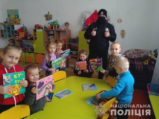 Книжками порадував вихованців дитячого садка у селі Заруддя. Вихователька дошкільного закладу Білоберізької гімназії, якій поліцейський розповів про свою ідею, радо її підтримала.