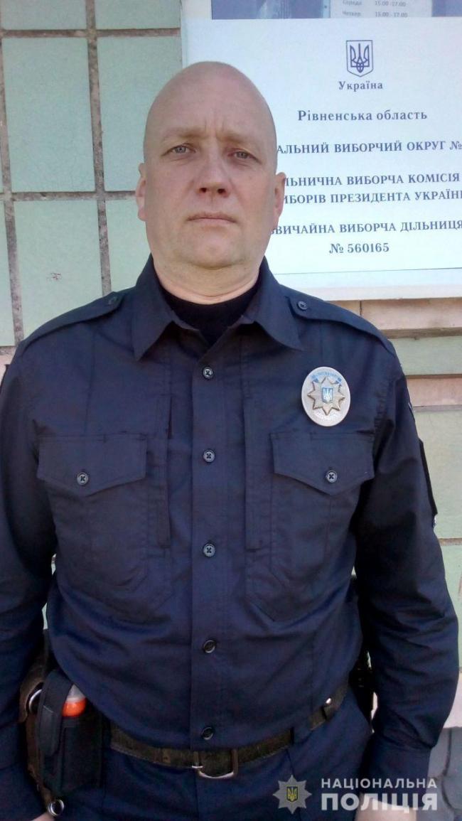 Помічник чергового ІТТ № 1 ГУНП в Рівненській області Леонід Подерня, який нині забезпечує правопорядок у приміщенні виборчої дільниці, зреагував як і на службі оперативно — одразу надав кваліфіковану допомогу. Адже старший сержант поліції 22 роки працює в органах внутрішніх справ, із яких половину — в ізоляторі тимчасового тримання. Як каже поліцейський, довелося не раз стикатися із подібними ситуаціями, тому знає, як правильно діяти під час нападу епілепсії.