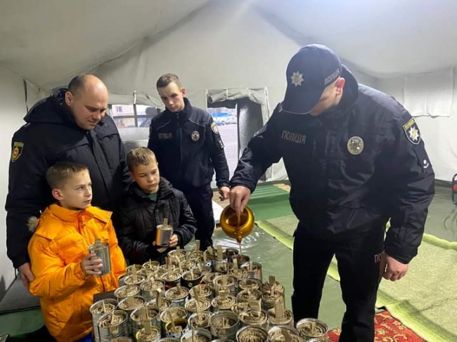 Процес виготовлення відпрацювали до автоматизму: одні ріжуть, інші натирають та топлять віск — усе під пильним наглядом дорослих. Поряд із ними і очільник Сарненського райвідділу поліції Олександр Луцик, який зініціював проведення такого заходу.
