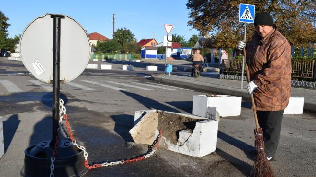 Нагадаємо, вранці 26 вересня жителі селища в центрі побачили таку картину: розтрощена й перекинута клумба, з якої випала земля для квітів. Сусідня клумба і дорожній знак також постраждали від удару.