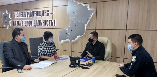 Керівник поліції області поділився із керівниками Острозької та Корецької громад Юрієм Ягодкою та Людмилою Дмитрук досвідом практичної реалізації проєкту на території інших громад Рівненщини, а також його перевагами. Також присутні обговорили актуальні питання взаємодії громад із поліцією для забезпечення безпеки на територіях.