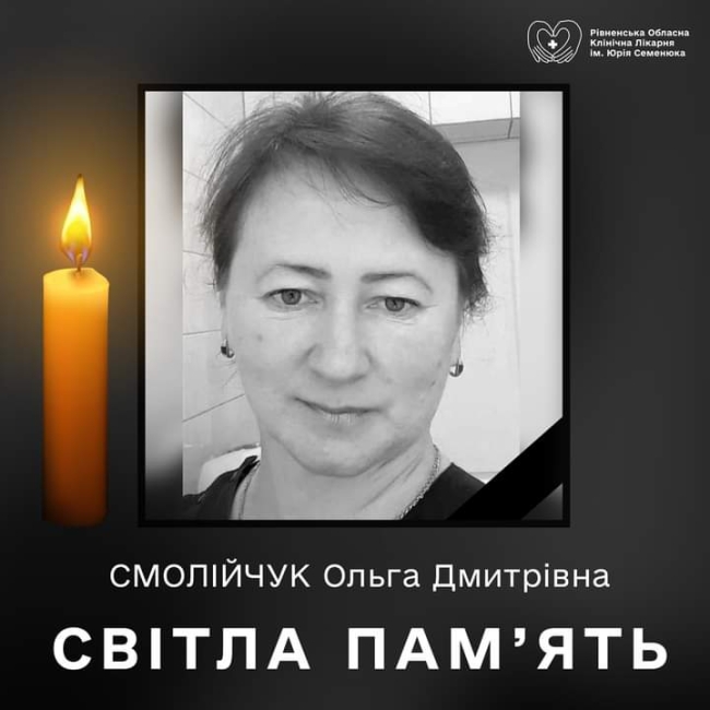 Нехай добрий, світлий спомин про Ольгу Дмитрівну назавжди залишиться у серцях рідних та близьких. Вічна та світла пам’ять, – йдеться на фейсбук-сторінці Рівненської обласної клінічної лікарні.