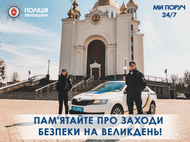 Правоохоронці просять громадян за можливості утриматися від участі в нічних богослужіннях, аби не наражати себе на небезпеку, яку можна очікувати від ворога в будь-яку хвилину. Будьте свідомими — не нехтуйте сигналами повітряної тривоги та комендантською годиною, послаблення якої діятиме для вірян виключно у великодню ніч. Відповідно до рішення Ради оборони області дозволено пересування лише до місць проведення богослужінь та перебування поблизу церков громадян в межах населених пунктів Рівненської області, а також робота громадського транспорту на час богослужіння «від» і «до» храмів.