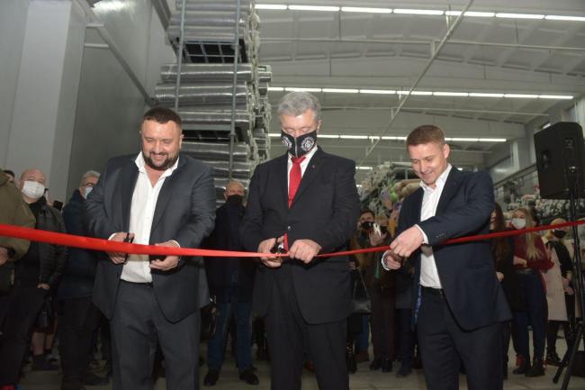 Наприкінці зустрічі Петро Порошенко, Олександр Третяк та Олег Червонюк спільно перерізали червону стрічку на вході в нову лабораторію на підприємстві. Директор льонокомбінату також провів екскурсію виробництвом для гостей.
