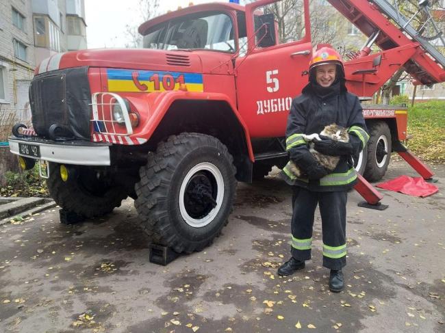 Порятунок чотирилапого: у Дубні рятувальники з даху багатоповерхівки дістали кота