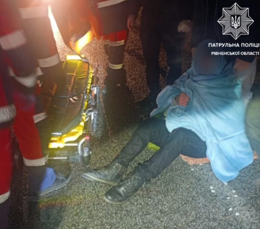 Патрульні поклали потерпілого у стабільне бокове положення, наклали пов’язку, щоб зупинити кровотечу і накрили його сухим пледом, щоб зігріти. Також викликали на допомогу колег з Рівного.