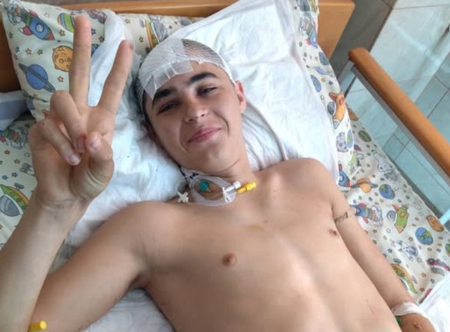 Попереду ще довге лікування та ви подивіться який вигляд має юнак зараз! Він вже в травматології, не в реанімації, хоч після травми і дуже складної операції пройшло всього три дні.