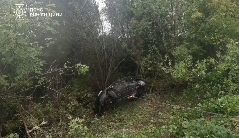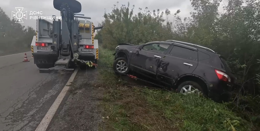 – Вчора о 9:41 на спецлінію “101” надійшло повідомлення про дорожньо-транспортну пригоду поблизу міста Острог. Прибувши на місце виклику рятувальники побачили перевернутий у кюветі легковий автомобіль марки Nissan Qashqai. Щоб не допустити загоряння транспортного засобу, від’єднали клему акумуляторної батареї та за допомогою лебідки дістали автомобіль з кювету, – розповіли у ГУ ДСНС Рівненщини.