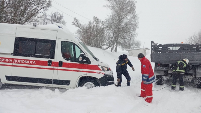 Упродовж 14 лютого карети швидкої допомоги 7 разів застрявали у заметах: