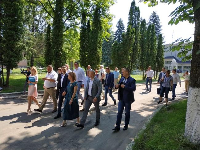 При в’їзді до льонокомбінату чергують правоохоронці. На території підприємства працюють також столичні охоронники. Пана Гройсмана супроводжують голова ОДА Олексій Муляренко, голова облради Олександр Данильчук, нардеп Юрій Вознюк та ще близько десятка місцевих та столичних чиновників.