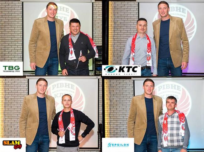 Керівництво та представників вищезгаданих компаній представили іншим партнерам та спонсорам БК “Рівне”, які підтримують клуб з перших днів існування – це компанія “AutoPlus”, ТМ Spele, компанія “Полісся-Трейд”, спільне українсько-чеське підприємство “PST Ukraine”, магазин меблів “Baltic House”, ТМ Futbolki.net, ТМ Espresso LAB, поліграфічна компанія “VPM Поліграф”, виробник спортивного одягу “Gera”, Медико-діагностичний центр ” Експерт”.