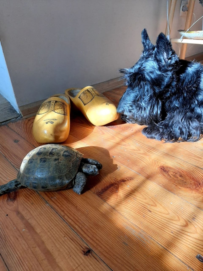 «Мій домашній “синоптик” черепаха Тортіла сьогодні нарешті прокинулася від зимової сплячки. А це означає? А це означає – весна невідворотна!»