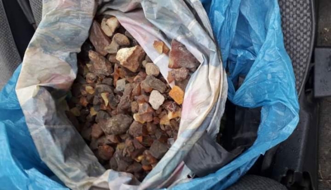 Під час перевірки транспортного засобу марки «ЗАЗ», що був зупинений в контрольованому прикордонному районі, прикордонники в салоні серед особистих речей виявили поліетиленовий пакет з бурштином.