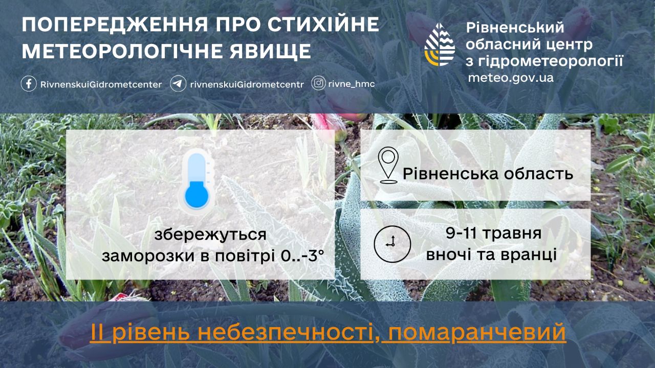 Такий прогноз погоди на 9 травня по Рівненщині підготували в обласному центрі з гідрометеорології: