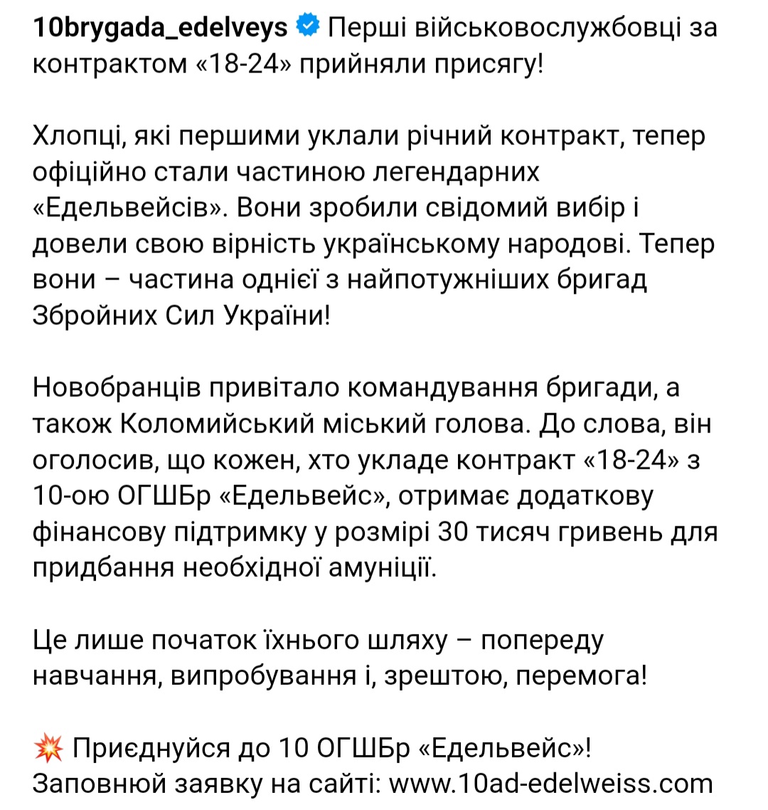 Такою новиною поділилися на Instagram-сторінці 10-тої окремої гірсько-штурмової бригади “Едельвейс”.