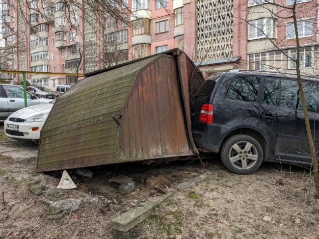 Сьогодні, близько 13-ї години, водій Volkswagen Touran здавав назад і в’їхав у металевий гараж «черепашка» у дворі багатоповерхівки на Волинській Дивізії. Гараж по інерції зсунувся та пошкодив припаркований поруч автомобіль Ford Focus.