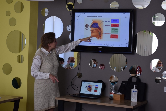 Ольга Анатоліївна поділилась із колегами доповіддю «Особливості клінічного перебігу і принципи терапії Дельта варіанту SARS-CоV-2», в якій торкнулась і питань поширеності даного штаму вірусу, і реінфекції, діагностики бактеріальної пневмонії, поширених помилок при призначенні антибіотиків хворим з COVID-19, підтвердження діагнозу грип, характерних клінічних його симптомів та багатьох інших питань, відповіді на які хвилювали медиків.