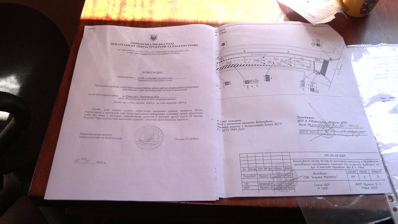 Я навіть не розумію, що треба ще десь щось погоджувати, коли у мене на руках знаходиться ордер про порушення благоустрою. Цей виїзд був на картосхемах з самого початку, він є в стадії проєкту. На сьогоднішній день, починаючи з містобудівних умов, розробки проєкту, експертизи проєкту, дозволу на будівництво, плану і проєкту ОДР — організації дорожнього руху, комісії по дорожньому руху при міській раді, департаменту інфраструктури, всі дозволи у мене на руках.