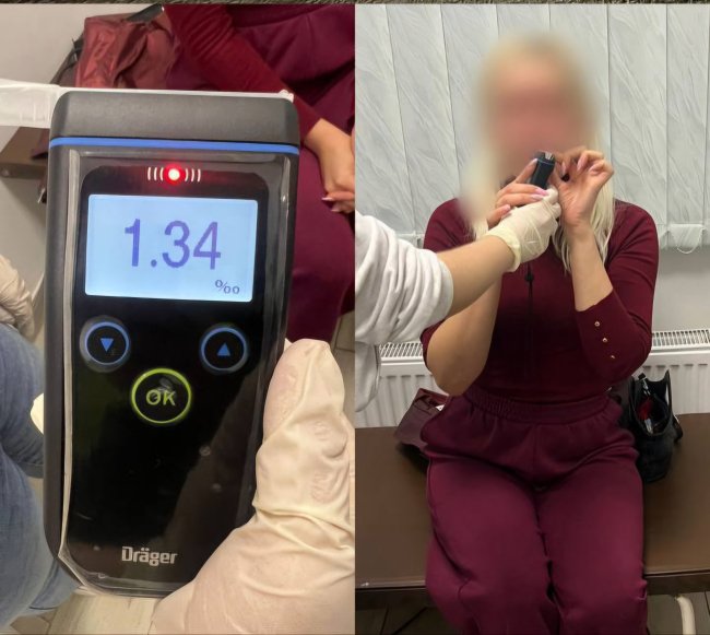 Жінка пройшла огляд на стан сп'яніння за допомогою алкотестеру, результат — 1, 53 проміле. А після цього виявила бажання пройти огляд і у медзакладі. Результат теж позитивний: 1, 34 проміле.