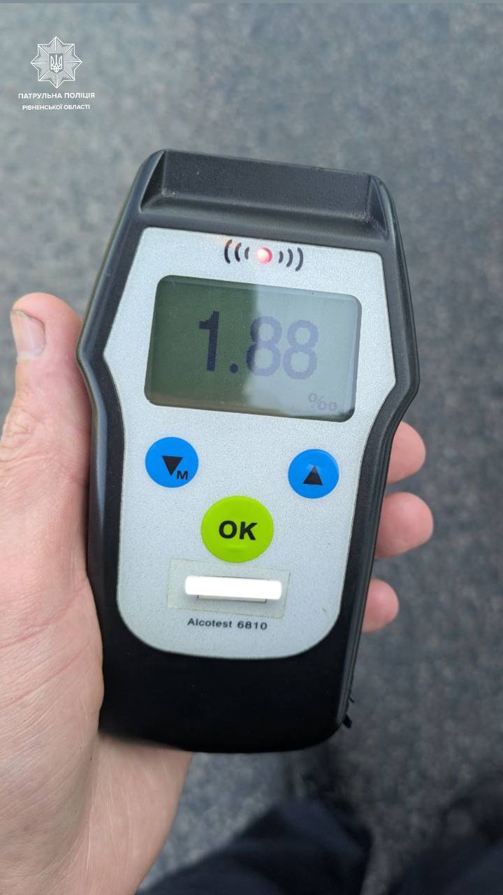 Правоохоронці виявили у 20-річного водія Volkswagen Caddy ознаки алкогольного сп’яніння й запропонували пройти огляд за допомогою алкотестера. Результат виявився позитивним — 1,88 проміле.