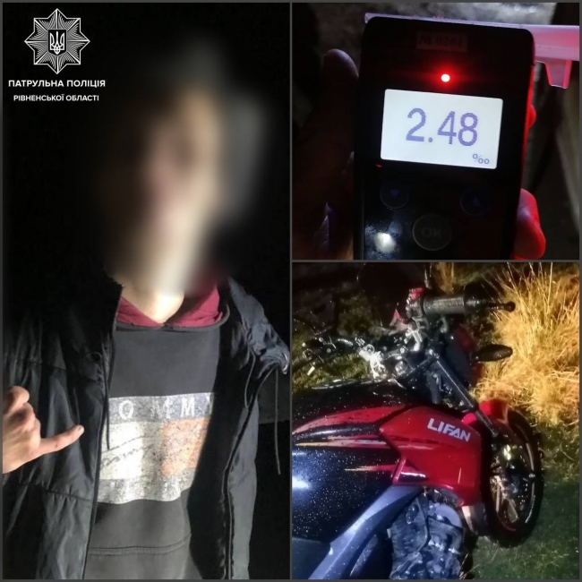 Учора близько 22-ї години на автодорозі М-07 Чудель — Тинне увагу патрульних привернув мотоцикліст. Він повільно їхав та виляв, а коли водій з’їхав на ґрунтову дорогу, то мотоцикл Lifan почало заносити на мокрій траві.