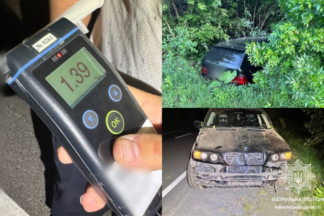 Більше того, водій був нетверезий. Він погодився пройти огляд на місці, результат — 1,39 проміле алкоголю.