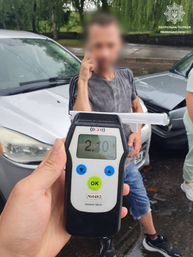 Патрульні запропонували останньому пройти огляд на стан сп’яніння на місці за допомогою приладу Драгер. Результат огляду — 2,10 проміле алкоголю в організмі чоловіка.