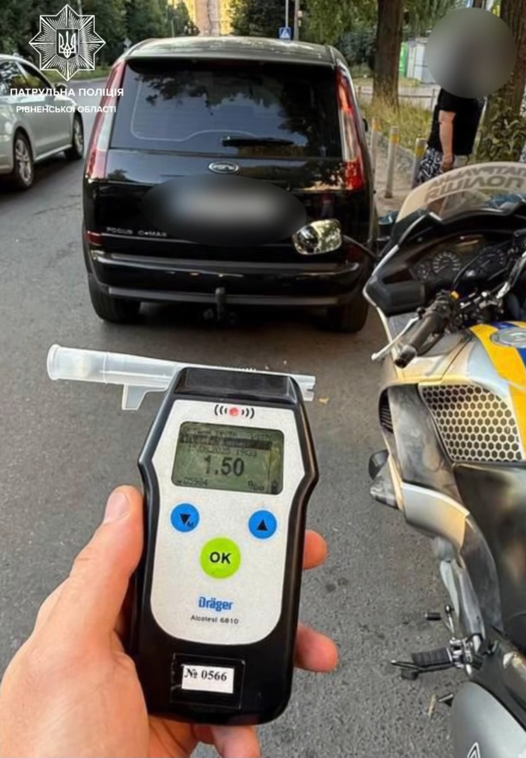 Мотопатрульні оперативно відшукали й зупинили авто. За кермом перебував 72-річний водій. У нього й справді були ознаки алкогольного сп’яніння. А результат огляду за допомогою алкотестера це лише підтвердив – прилад показав 1,50 проміле.