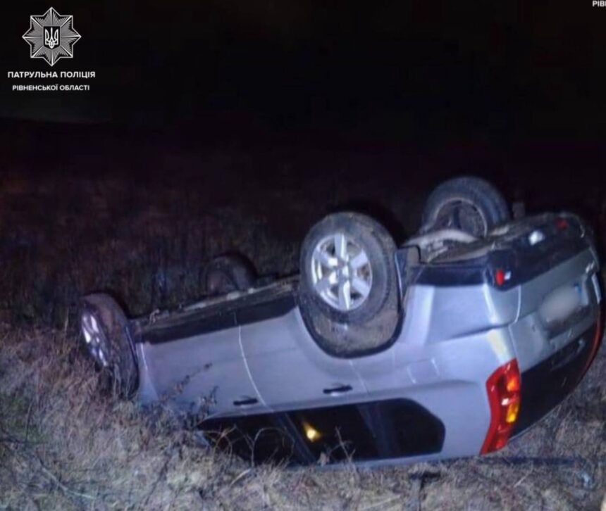– На місці інспектори зʼясували, що 35-річний водій не вибрав безпечної швидкості руху, не впорався із керуванням та з’їхав у кювет, а потім автомобіль перекинувся. У результаті ДТП автомобіль отримав механічні пошкодження. А водій та пасажири, на щастя, не травмувався, – розповіли у патрульній поліції Рівненщини.
