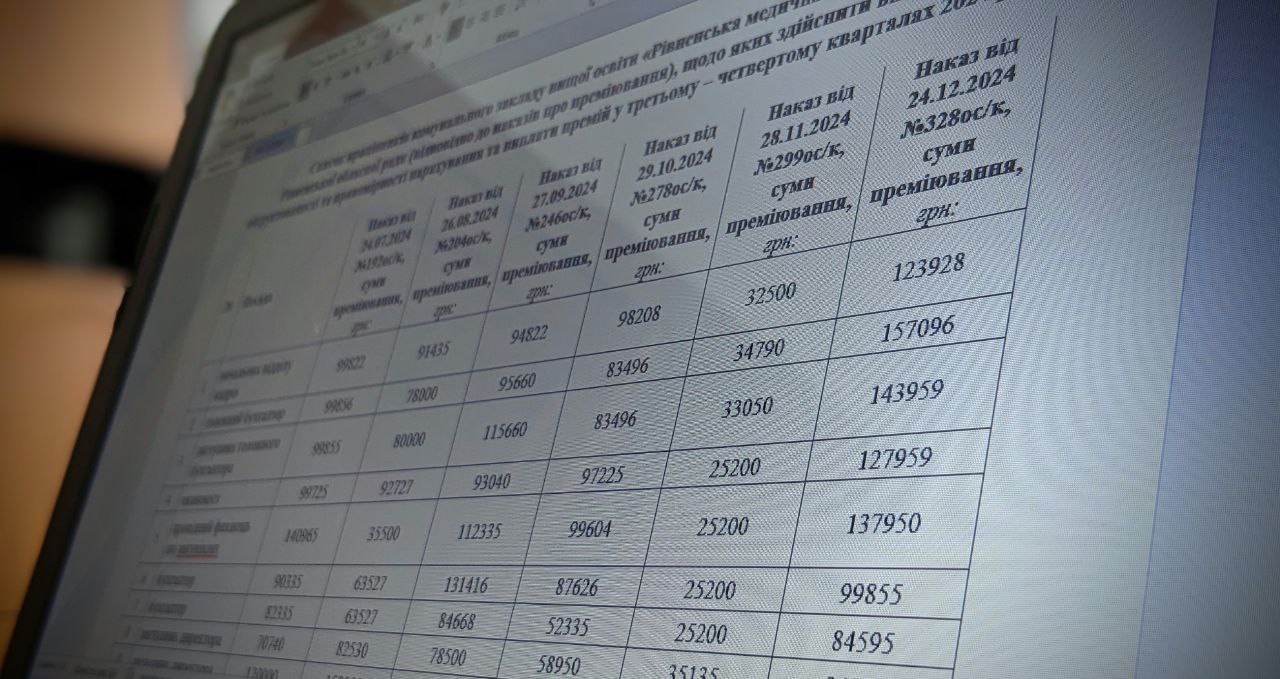 – Офіційно. Підписав розпорядження про початок службового розслідування та відсторонення Ростислава Сабадишина від виконання обов’язків ректора Рівненської медичної академії. Це пов’язано з історією про преміювання в період його керівництва, зверніть увагу на картинку з цифрами – це лише фрагмент.