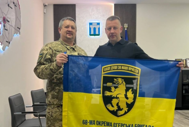У свою чергу, представник 68-ї егерської бригади старший лейтенант Олександр Іллюк передав Віктору Шакирзяну прапор підрозділу та пам’ятний шеврон.