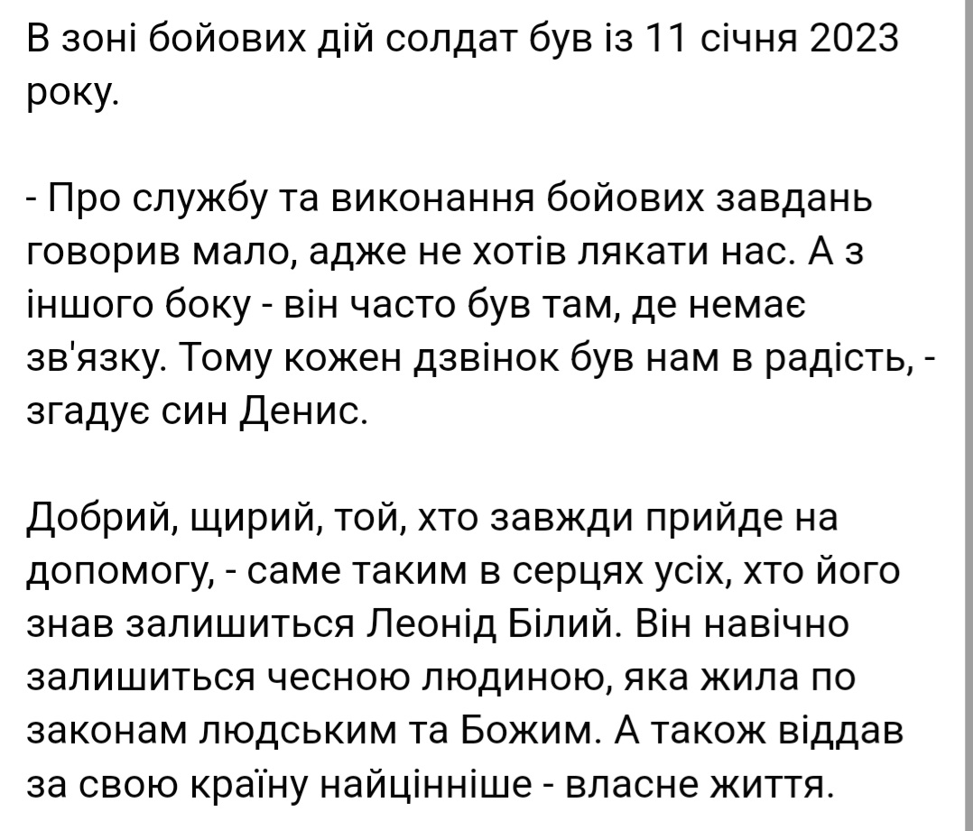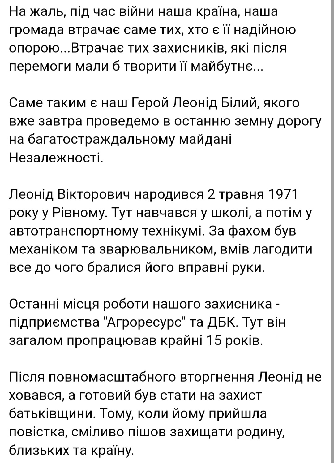 Рівне оплаче воїна Леоніда Білого, який поліг на Запоріжжі
