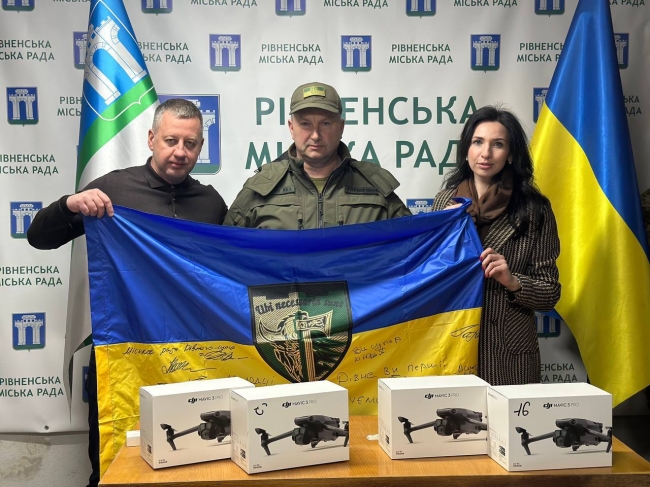 Також Рівненська громада продовжує співпрацю із Городоцькою, завдяки чому ще сім військових частин отримали 25 квадрокоптерів DJI Mavic 3 PRO.