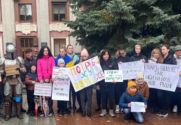 В Рівному уже кілька днів поспіль тривають вуличні акції на підтримку Збройних Сил України. Спершу під Обласною військовою адміністрацією, а сьогодні біля приміщення Рівненської міської ради на вулиці Соборній мітингувальники просили надати максимальну підтримку бійцям ЗСУ, що зараз перебувають на лінії фронту і боронять нашу країну від російських загарбників.