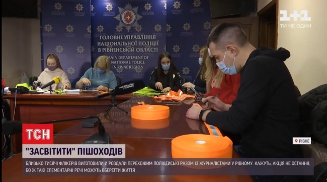 Про це повідомляє «ТСН». Відміряли та різали понад сотню метрів стрічки. Потім роздавали їх пішоходам на вулицях і нагадували правила дорожнього руху.
