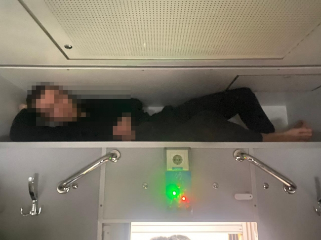 Відтак в одному з купе потягу «Харків – Хелм», що їхав до Польщі через залізничний пункт пропуску «Ягодин», інспектор виявив чоловіка, який сховався у багажному відсіку для зберігання речей.