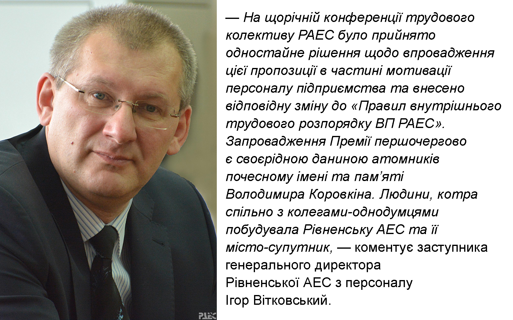 Премія також є засобом морального і матеріального заохочення рівненських атомників до активної участі в процесі підвищення ефективності безпечного функціонування АЕС, здійснення творчого підходу у вирішенні виробничих питань, новаторських ідей щодо удосконалення обладнання, впровадження сучасних технологій, форм і методів роботи. Це, у свою чергу, є відзнакою вагомого внеску у розвиток Рівненської АЕС, атомної енергетики, подякою за високоефективну, результативну працю і діяльність, розвиток експлуатаційної безпеки, впровадження сучасних методів управління, йдеться на сайті Рівненської РАЕС.