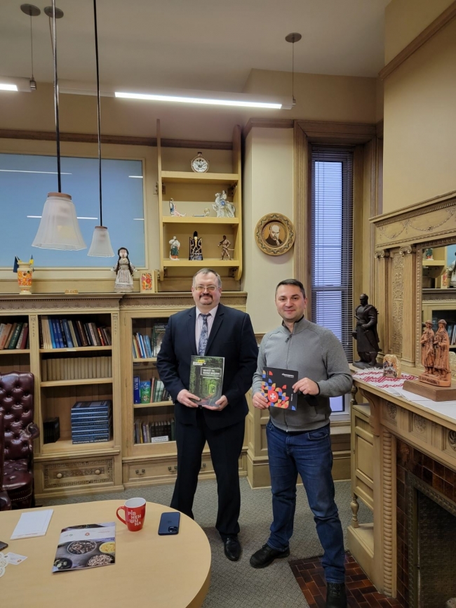 У свою чергу, Сергій Коледов поінформував про особливості соціально-економічного розвитку Середнього Заходу США, структури експорту та імпорту товарів і послуг в регіоні, можливостей залучення інвестицій місцевих бізнесменів в Україну.