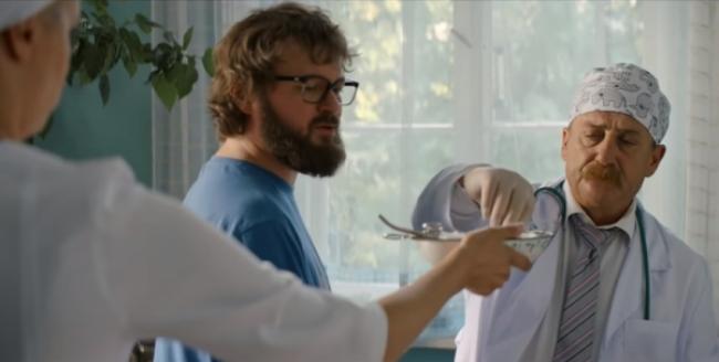 — Ні, роль зіграв без жодних консультацій. Все побудовано на моїх власних спостереженнях та розповідях знайомих лікарів. Мені навіть довелося за сюжетом аналізи в Дзідзьо брати (сміється). Дуже сприяло те, що зйомки проходили в реальній лікарні, де все пахне «совдепією», радянським застоєм. Крім того, у мене в трудовій книжці є запис «актор». І це як у музиці: якщо навчений, то мелодію зіграєш коли б не попросили. При цьому в кінематографі не треба театральності, тільки реалізм. У нас перед фільмом були репетиції, але суто технічні — щоб знати, де поставити камеру.