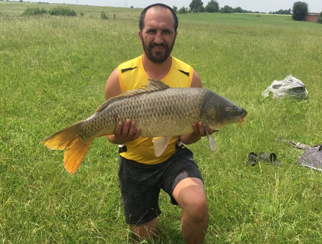 Той спіймав у водоймі в селі Даничів Корецького району 10 кілограмового коропа.
