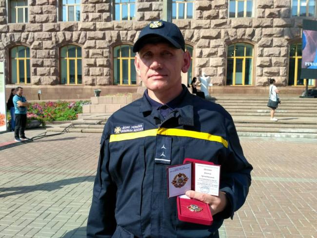 Нагородження відбулося сьогодні, 15 вересня, у Києві. Відзнакою нагородили Віктора Дундюка, водія-сапера групи піротехнічних робіт аварійно-рятувального загону спецпризначення ГУ ДСНС у Рівненській області. Пан Дундюк є прапорщиком служби цивільного захисту.