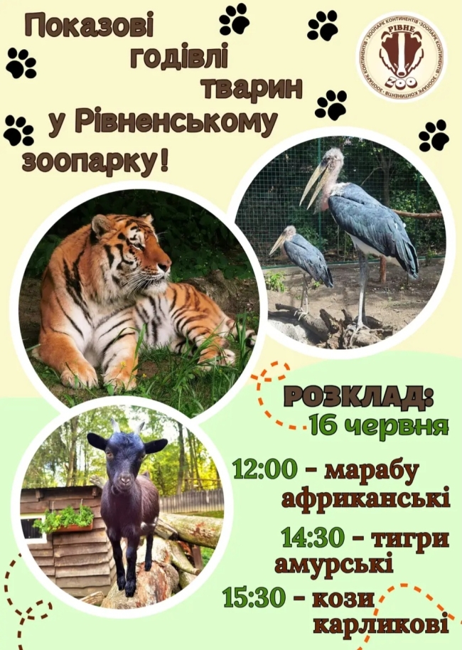 Зокрема, о 12.00 обідатимуть африканські марабу, о 14.30 – амурські тигри, а о 15.30 – карликові кози.