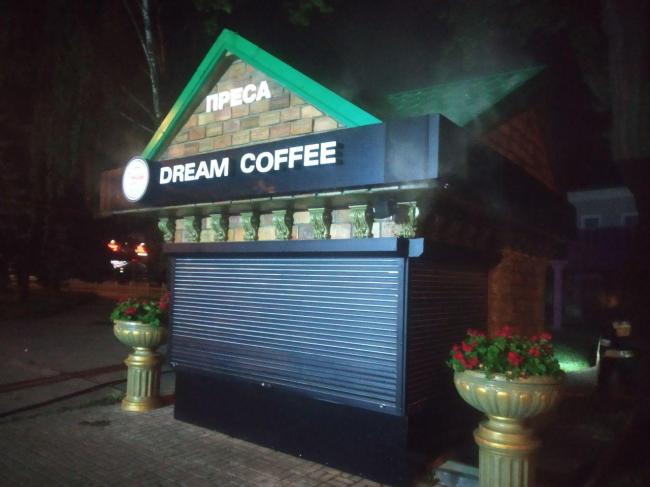 У кіоску торгували кавовими напоями та пресою і відкрили його тільки недавно. Належить «Drinks Coffe» підприємцю Сергію Шабаліну, який, відкриваючи кіоск, зазначав, що хоче відродити у місті традицію читати газети за кавою.
