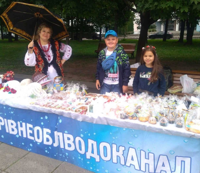 Це перший благодійний ярмарок, які організували працівники «Рівнеоблводоканалу». Упродовж вихідних на «Чайчиній алеї», що за кінопалацом «Україна», вони спільно з родинами продавали смаколики, іграшки, картини, вишиванки та інші вироби, які виготовили власноруч спеціально для цієї події.