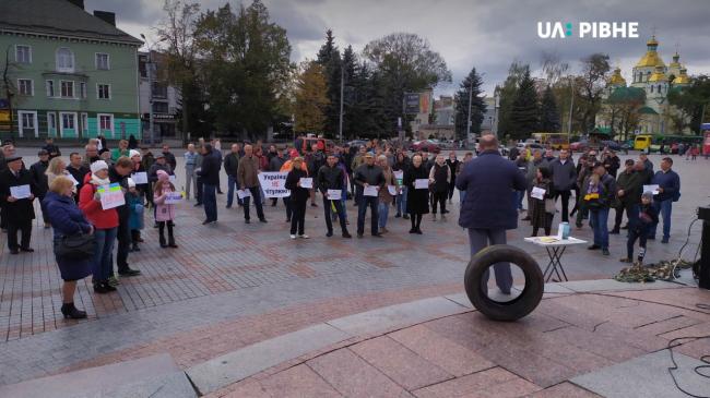 Учасники акції, яка вже закінчилась у Рівному,  збирають підписи під зверненням до президента.