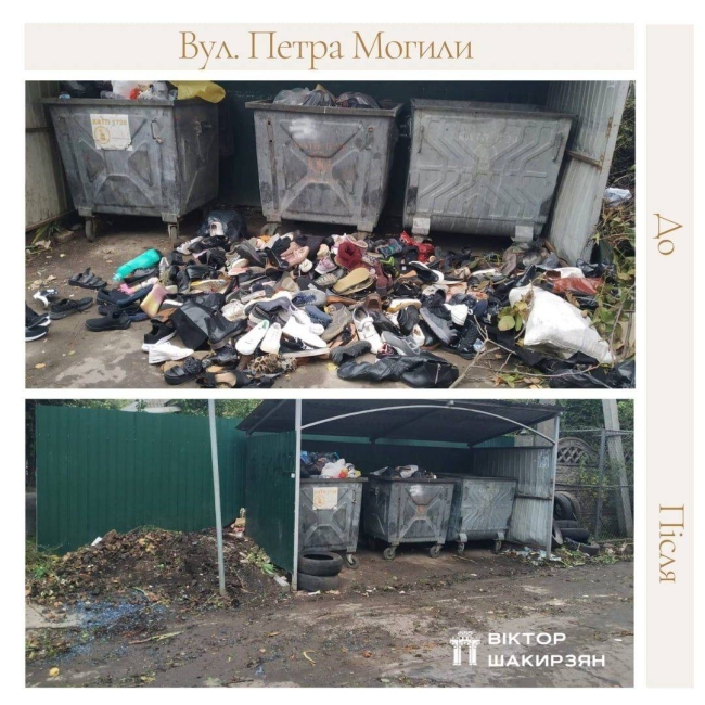 Складалося воно зі старого взуття, яке хтось показово розклав перед контейнерами.